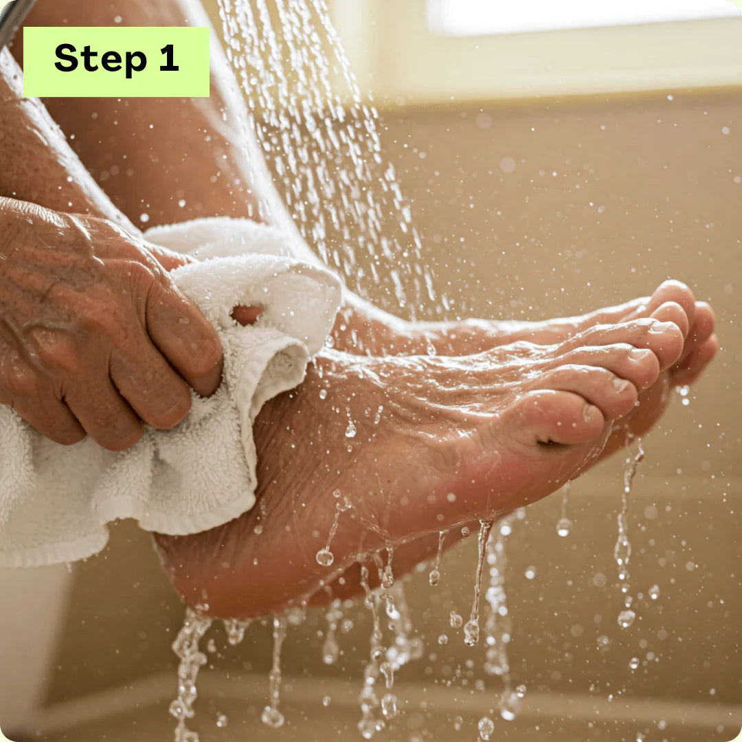 Take your regular shower and wet the affected areas between your toes where the fungus is growing.